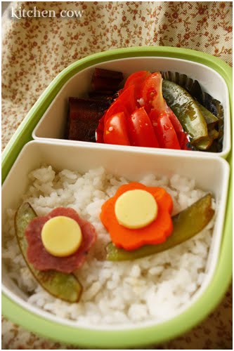 3.Slice tomato and cucumber into small cubes and combined with pork belly.